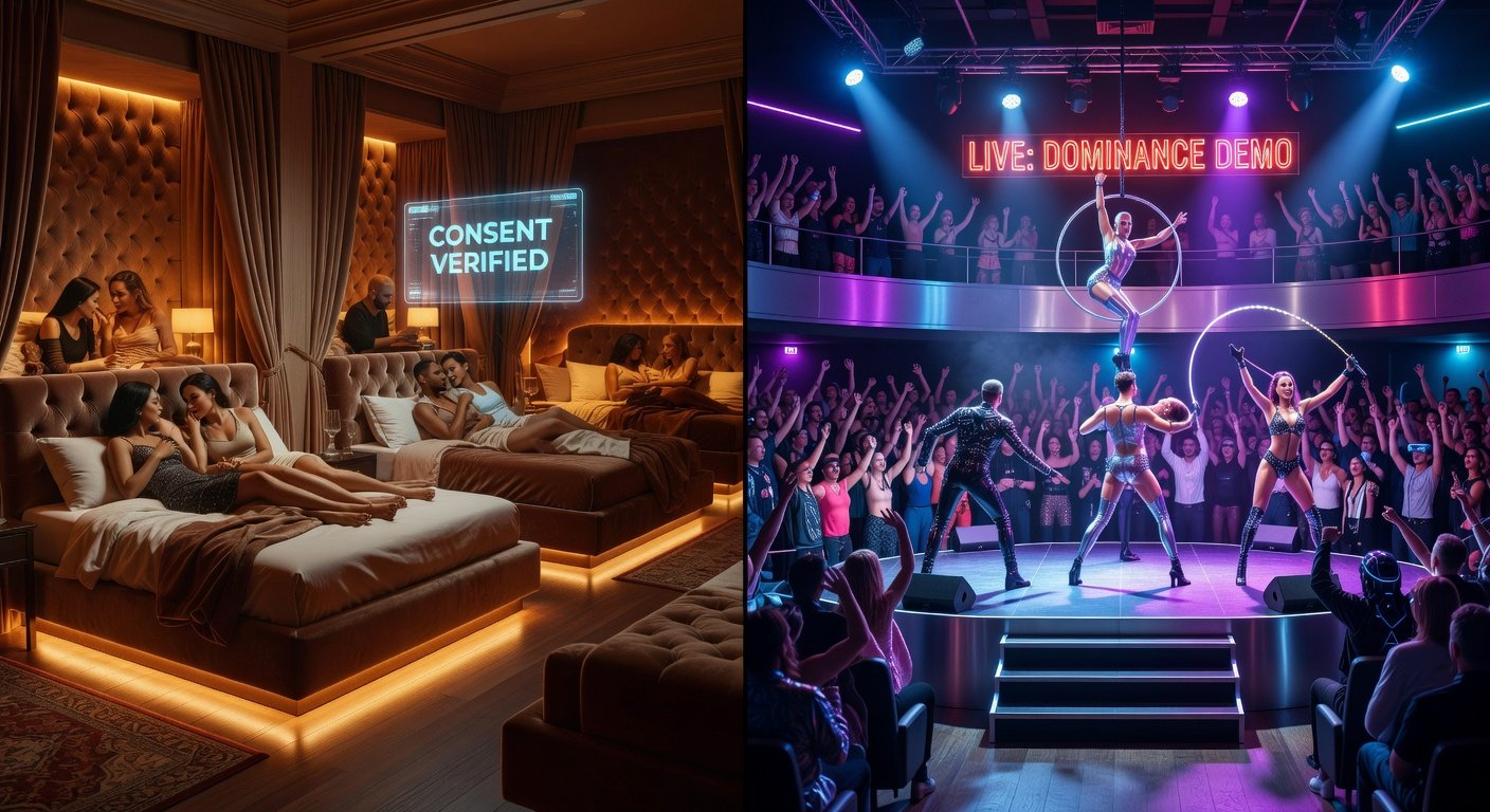 - Crowd Vibes: Diverse ages 25-55, inclusive of all genders/orientations. High-energy, flirtatious, with a mix of voyeurs, players, and performers.