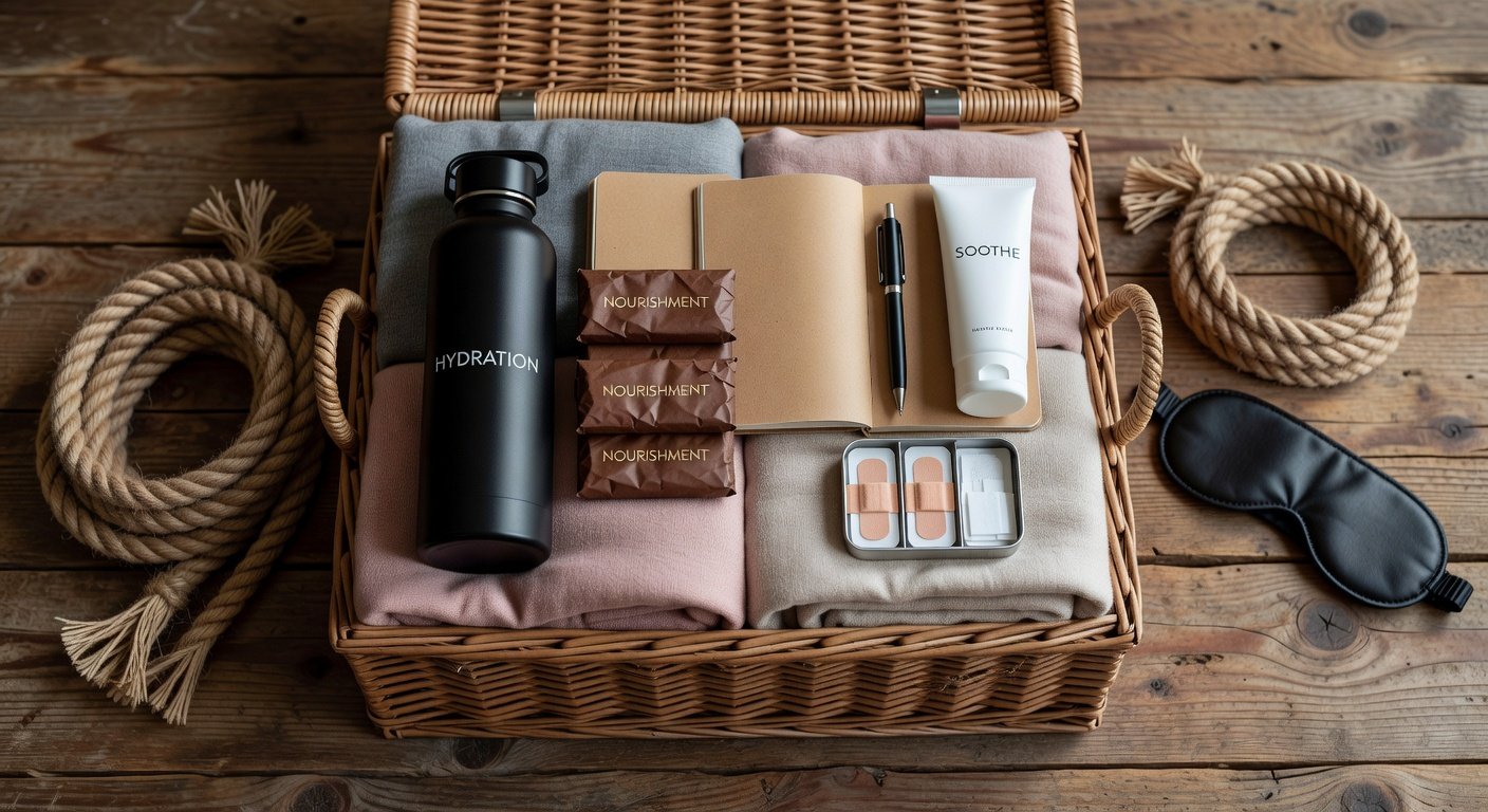 - Hydration: Water bottles, electrolyte drinks.